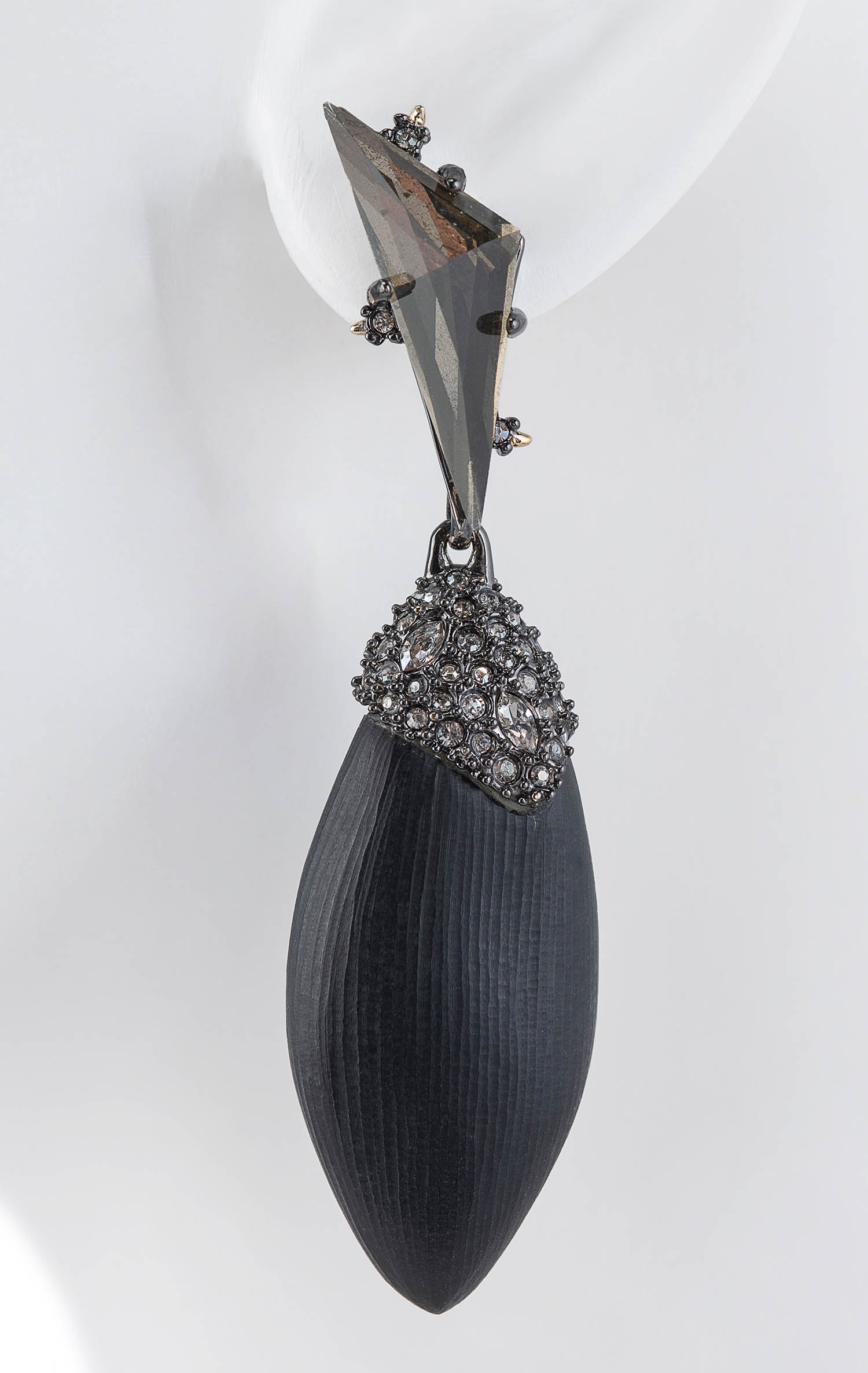 Black lucite in silver druzy