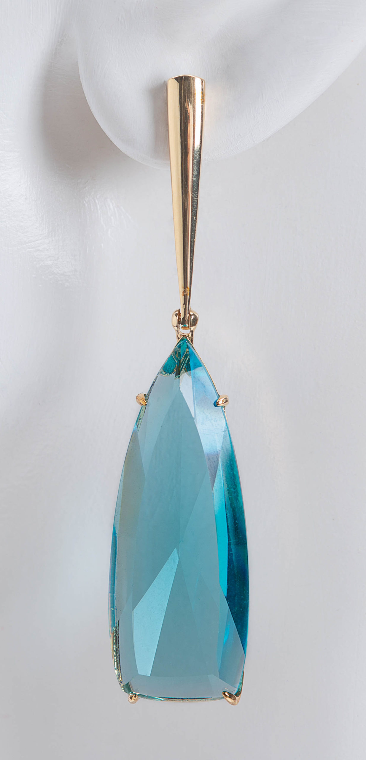 Brazilian blue tops over 9 carats. 18 K gold post.